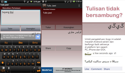 Tulis Jawi is a simple application that convert Roman character to Malay's jawi. You can copy paste the text to any apps you want, simply press the Copy button!